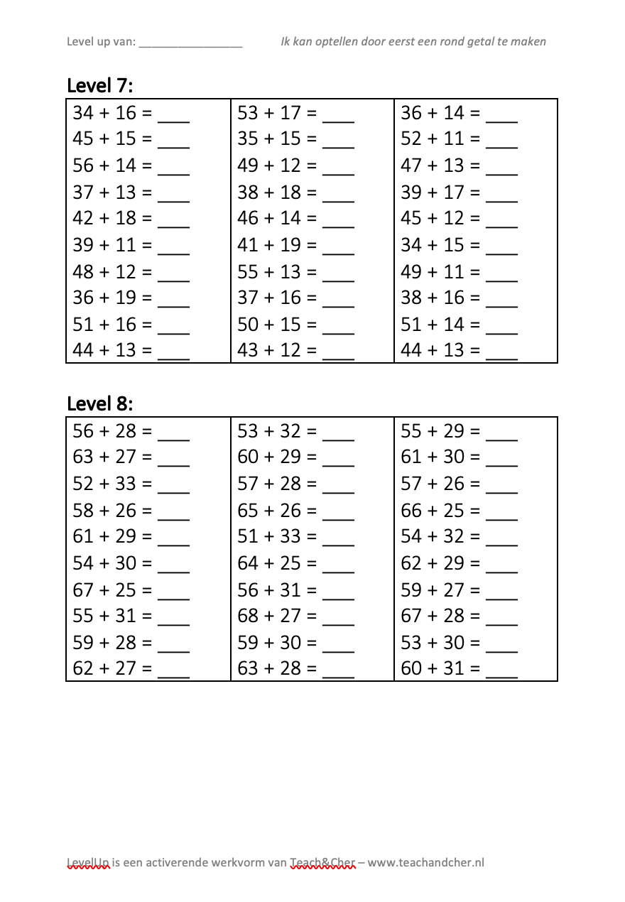 Deze Level Up versie richt zich op het optellen via het tiental (rond maken).